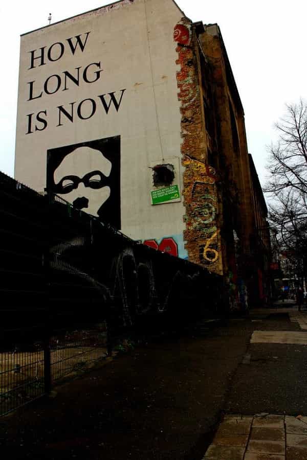 Entre otros, pude ver uno de los trabajos más populares del italiano Blu, "The Pink Man"; los que realizó con el francés JR “Brothers Upside and Down” y “Chains” y la frase del mural "How long is now" pintado por la artista callejera Yz en lo que queda de lo que fue el centro de arte okupa Kunsthaus Tacheles (Art House Tacheles).