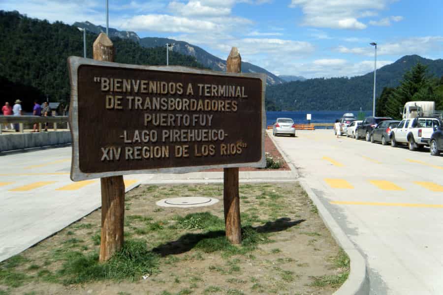 Llegamos apurados intentando coger la barcaza de las 2 de la tarde, pero fue imposible porque había una fila de turistas enorme y le estaban dando prioridad a los autos. Esto es común en verano y los automovilistas pueden evitar la espera reservando con anticipación. Para los peatones no hay opciones de reserva, pero descubrimos que la mejor fórmula es quedarse un día a alojar en Puerto Fuy y comprar el pasaje a primera hora de la mañana.