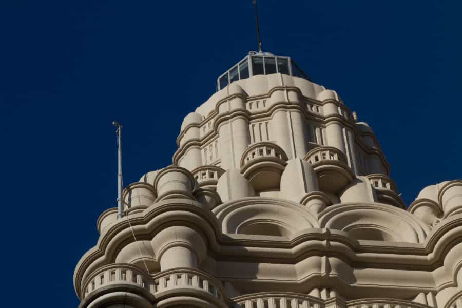 Por sus características arquitectónicas, cuesta imaginar que es un edificio de oficinas comerciales. Sus ascensores, balcones, escaleras serpenteantes y cientos de detalles muchos de ellos relacionados con la logia masónica, lo hacen tener un aire más de museo o de una gran galería de arte.