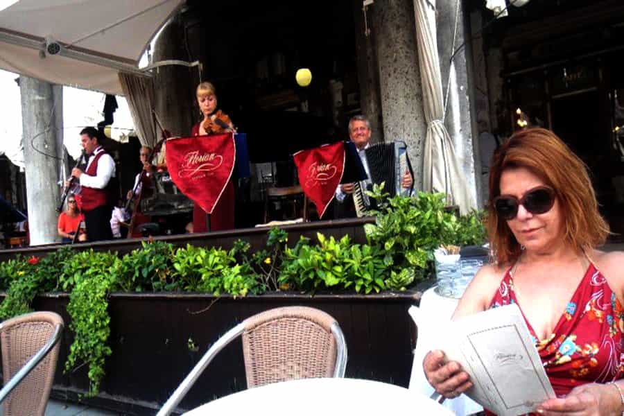 Si bien Italia se caracteriza por tener uno de los cafés más ricos del mundo y de Venecia contar con cientos de cafeterías, no puede dejar pasar la oportunidad de ir al mítico Café Florian, fundado por el 1700. Es la cafetería más bella que he visto y si realmente quiere sentir el espíritu veneciano en sí, lo ideal es que se siente en la terraza (aunque deba pagar de más) y escuche a los músicos clásicos en vivo y en directo tocar los violines y el piano para usted.