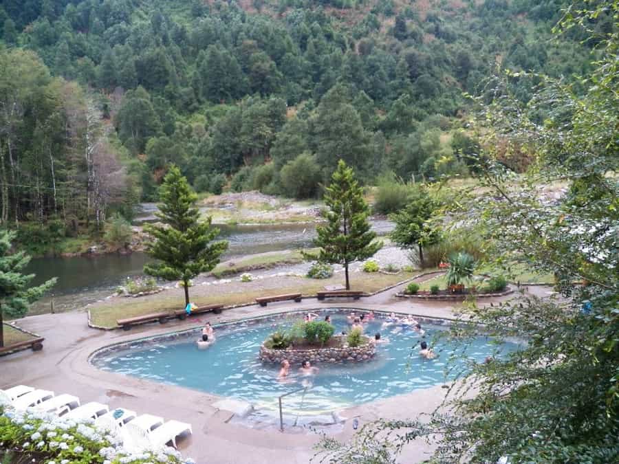 Al día siguiente, tomamos la misma ruta y nos detuvimos en el km. 30 para entrar a las Termas Kimey-Co. Pagamos $12000 por persona y obtuvimos nuestras pulseras para acceder al recinto. Lo siguiente fue deslumbrarnos con la naturaleza al bajar las escalinatas por donde se llega a la cafetería. Desde allí se puede apreciar el río Liucura y al mismo tiempo las piscinas termales al aire libre. Además, el lugar cuenta con una piscina techada, spa y senderos que el visitante puede recorrer a pie. Lo positivo de Kimey – Co es que evitan el colapso y cierran sus puertas cuando están completos, así que pasamos dos días en sus dependencias.