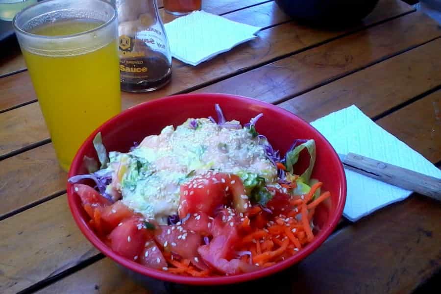 "¿Por qué ese restaurante está lleno de estudiantes haciendo cola?" Les respondo: es porque sirven una fusión de comida japonesa con ingredientes chilenos y todo esto servido a la velocidad de la comida rápida. Este hermoso experimento culinario se llama Tokio Bol y viene en forma de pote. ¿Qué contiene? Una base de arroz, el tipo de carne que quieras (pollo, cerdo, mixto, salmón crudo, camarones o simplemente vegetariano) y encima una ruma de ensalada con deliciosa salsa blanca, picante y salsa de jengibre. De lunes a sábado atiende esta maravilla, con platos que no superan los 3 mil pesos. El local de Plaza Perú sólo vende comida, mientras que en Angol también tienen cerveza artesanal y ensalada griega a la venta.