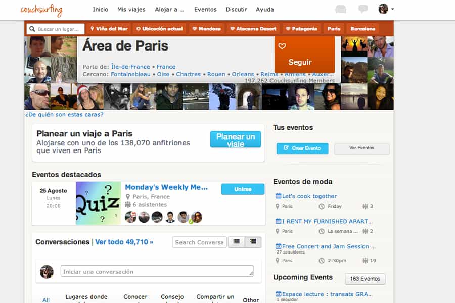 Si no puedes ofrecer couch, puedes poner en tu perfil que estás disponible para ir a tomar algo, así puedes ayudar a recorrer o conversar con personas extranjeras sin ofrecerles tu casa. Definitivamente, una red social que sirve para todos quienes amamos viajar y conocer viajeros.