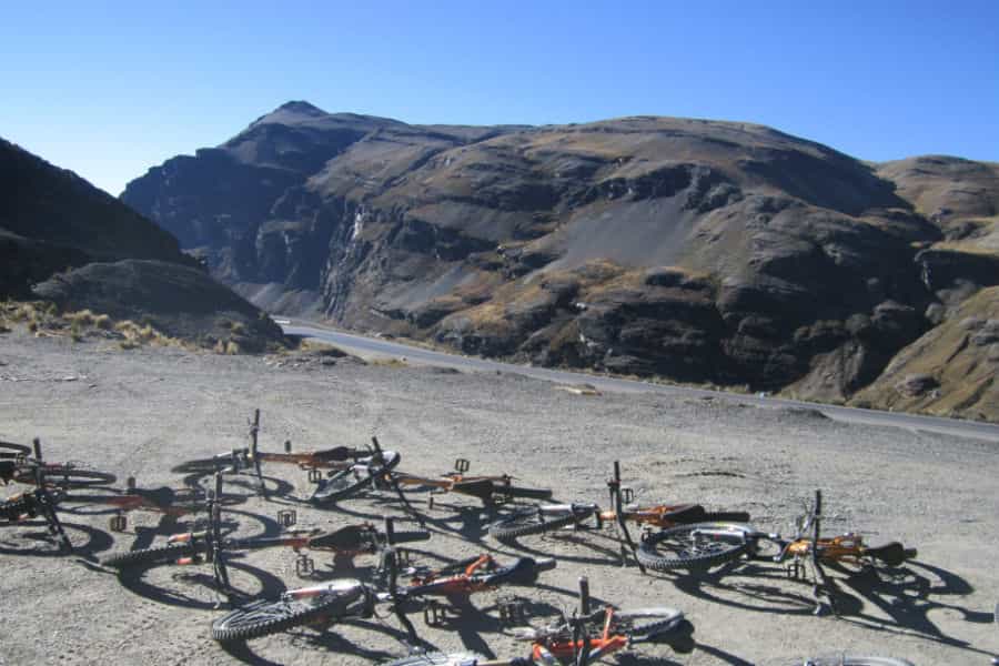 Armada de valor, a las afueras de La Paz, junto al grupo debimos escoger las bicicletas para la hazaña, donde es vital, aparte de quedar cómoda, fijarse en el estado de las llantas debido a la capacidad de agarre de la máquina, sobre todo si necesitas frenar en una curva de no más de un metro de ancho, entre una montaña y el abismo.