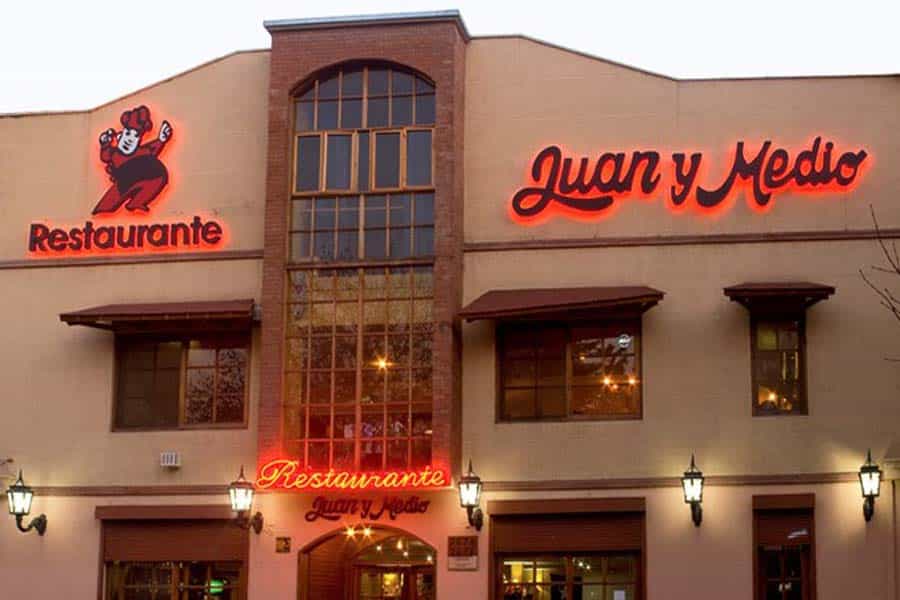 fundado en 1947, debe su fama a sus abundantes y ricas preparaciones que no hacen más que resaltar lo variado de la gastronomía local. Eso sí, si su acompañante no es de comer mucho, no recomiendo este local, ya que para ir a Juan y medio la regla fundamental es: "ir con hambre", para disfrutar en su totalidad, los exuberantes platos, como el delicioso bistec a lo pobre, las parrilladas, las empanadas y también las tradicionales cazuelas. Su casa matriz esta ubicada en Longitudinal Sur, Km. 109 en cruce de Rosario. ¿Lo encuentra lejos? no se preocupe, hace poco abrieron unas sucursales en Calle Brasil, Santiago Centro y en Providencia. Así es que ya lo sabe, no tiene excusa para no ir a darse una vuelta y comer rico.