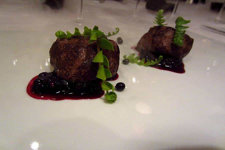 Plato: Carne con caramelo y frutos del bosque de restorán Boragó (www.borago.cl) Imagen CC. Páris Neto