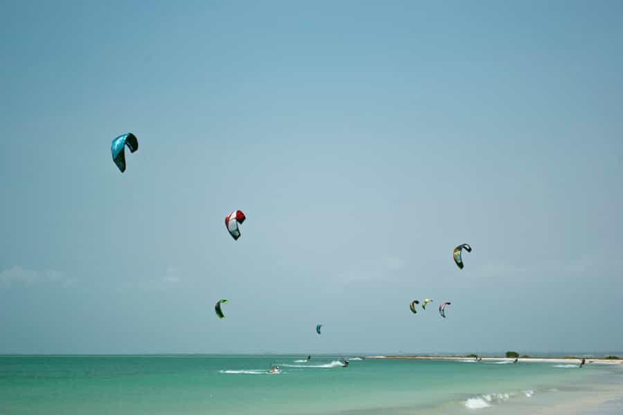 Las playas son de arena blanca, aguas tranquilas y cristalinas, pero el viento sopla con la fuerza suficiente para convertir a esta isla en uno de los principales centros para la práctica del kitesurf en Venezuela, muchos turistas europeos asisten a Playa La Punta, donde está ubicado el centro de entrenamiento.