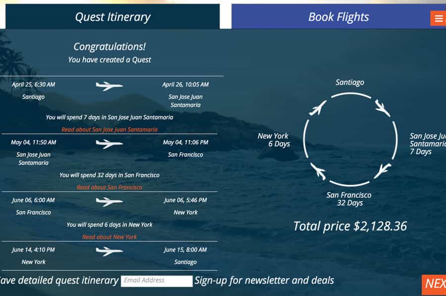 QuestOrganizer es una nueva página que te ayuda a diseñar nuevos programas de viaje, cómo? Con un motor de búsqueda que te sugiere nuevos destinos extra basados en tus planes de viaje.