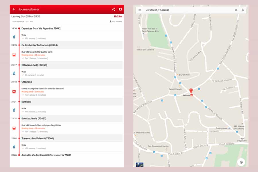 2. Probus Roma: gracias al GPS de tu móvil, esta aplicación te permitirá planificar tu viaje y encontrar la parada más cercana a tu lugar. Además podrás visualizar los recorridos de un autobús y las conexiones existentes, revisar el tiempo que demorarás en trasladarte a pie, en bus o metro, y ver un mapa con la ruta que deseas seguir, entre otras opciones.