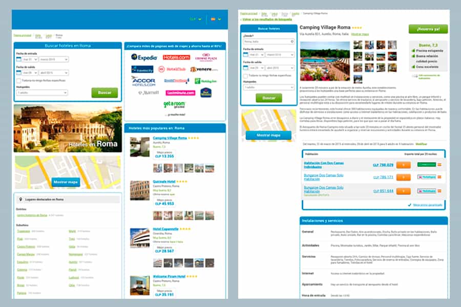 3. Hoteles en Roma: el dónde te quedarás también es un tema que debes considerar. Esta herramienta te entregará opciones de estadía, con los costos transformados a pesos chilenos, el tipo de servicio, la disponibilidad de reserva y el sitio donde se encuentra. También puedes especificar la cantidad de personas que se hospedarán contigo y el posible periodo de estadía, entre otras alternativas.