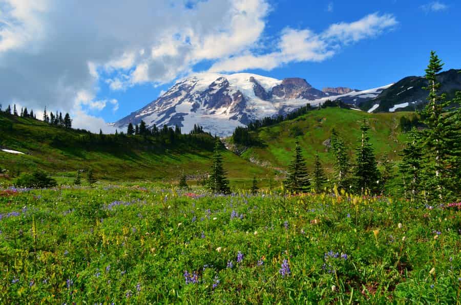 Hermosas vistas al Cascade Mountain Range y a más de 300 glaciares marcan la casi culminación del viaje en el estado de Washington.