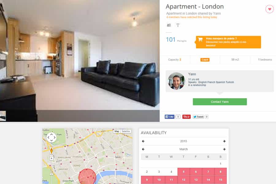 Actualmente la plataforma tiene 22.000 usuarios y propiedades listadas en 3.000 ciudades. No es una mala idea inscribirse y buscar las opciones disponibles. Si lo tuyo es simplemente compartir sin necesidad de intercambios de dinero o puntos, otras plataformas te serán más útiles.
