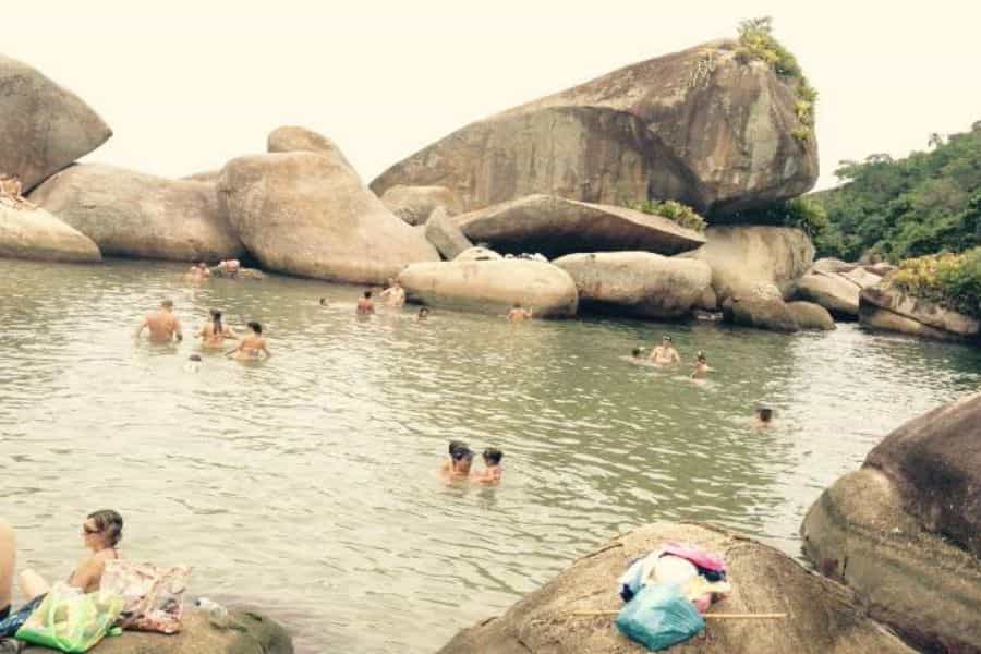Decidimos recorrer tres destinos en nuestro viaje, partiendo por Paraty, un pueblo lleno de cultura (Un ejemplo en Chile sería el barrio Lastarria) con un centro histórico repleto de bailes, cafés y buen carrete (en realidad, todo Brasil tiene buen carrete). Dentro de todo fue el sitio donde estuvimos más tranquilos. Ahí llegamos a la casa de Gustavo, un espacio abierto, gigante y muy ordenado que se encontraba en el sector “Cabore” y que lo cruzaba un riachuelo precioso. Paraty se preparaba para los aires de carnaval, así que era super común toparse con grupos ensayando para el gran evento. En este pueblo contratamos a un guía turístico “Joao” parte de la empresa Terra Brasil. Con él partimos a recorrer unas “praias” increíbles, nos bañamos en reservas naturales, comimos rico frente al mar y nadamos hasta que empezaban las lluvias. Todo un día guíado por un experto de la zona.