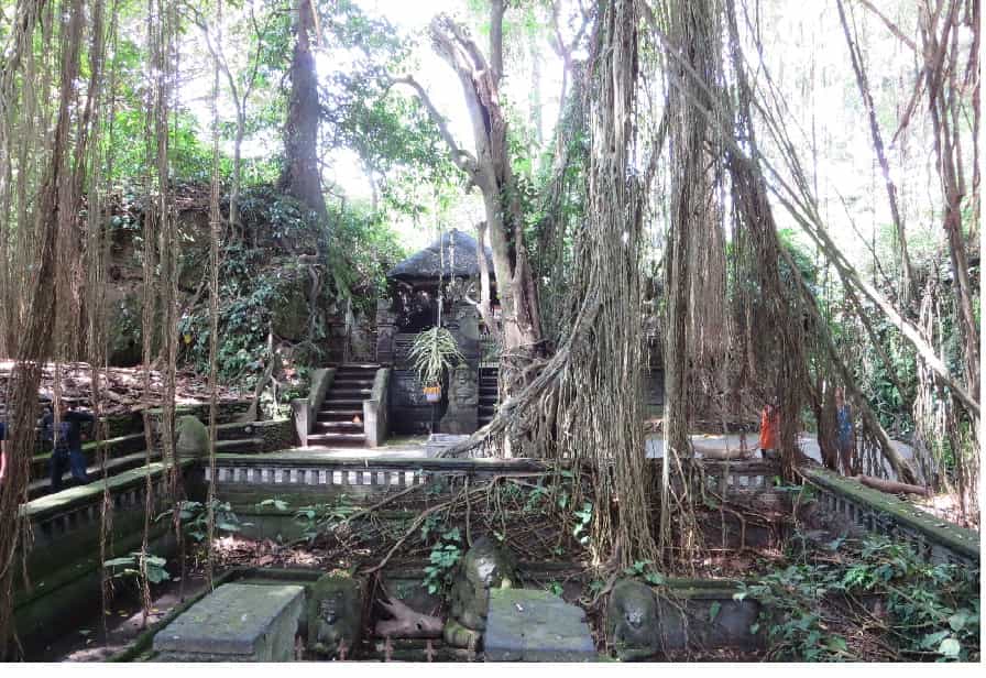 Monkey Forest (portada): En Ubud está en la calle principal el Monkey Forest, un templo que está protegido por monos y que vieron como apaciblemente la selva dominó todos los rincones de este gran templo. Es realmente increíble, y vale 20.000 rupias. A la entrada un cartel reza tener cuidado con los monos que suelen apropiarse de ciertos elementos del turista como cámaras fotográficas, celulares y obviamente comida.