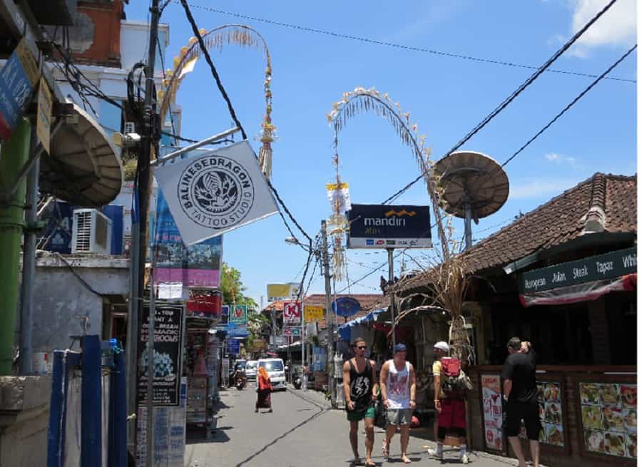 Kuta: Es el centro del carrete australiano, uno de los epicentros surfistas de la isla, las entradas a las playas tienen puertas plagas de símbolos hindúes. La isla tiene una humedad importante en la que con tormentas eléctricas el calor sigue siendo difícil de lidiar. Kuta es para fiestas y para playa. Entre US$5 a US$10 hay una cantidad inimaginable de hostales y dorms, principalmente por las calles Poppies Gang y Legian. Recomendable el Gora Inn.
