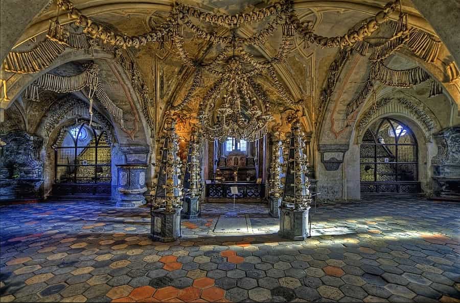 Esta capilla está a 80 km de Praga, pero es un viaje que seguramente harán los viajeros más curiosos y ansiosos de probar nuevas emociones. La capilla de las calaveras está situada bajo la iglesia del Cementerio de Todos los Santos en Sedlec y está decorada con más de 40.000 esqueletos humanos, colocados artísticamente en paredes, techo, lámparas y en todas partes donde cabían, básicamente. La obra es del artista František Rint, a quien se le pidió reubicar unas osamentas que se habían movido a causa de una remodelación del cementerio en el año 1870. Este era un cementerio muy popular en la Europa Medieval, por lo que rápidamente se quedaron sin espacio para más cuerpos, que al final quedaron en la Iglesia.