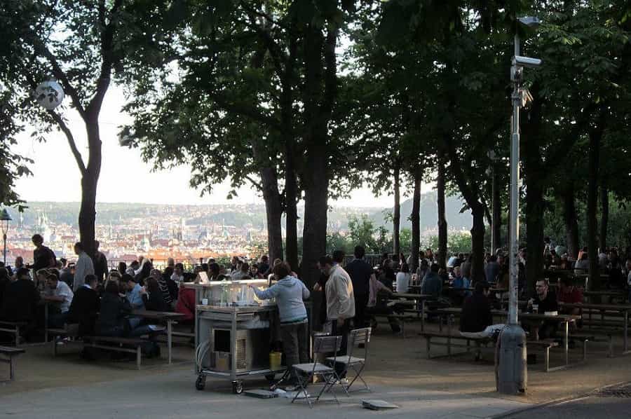 Este es mi lugar favorito de Praga, lo conocí gracias al Tour de la cerveza, está ubicado sobre una de las colinas cercanas al centro hay un sector de picnic donde venden distintos tipos de cervezas. Es un excelente lugar para descansar luego de una jornada de largas caminatas, y para relajarse con las mejores vistas a la ciudad. Desde aquí se pueden ver varios del puentes que cruzan el río Moldova, además de los bellísimos edificios checos.