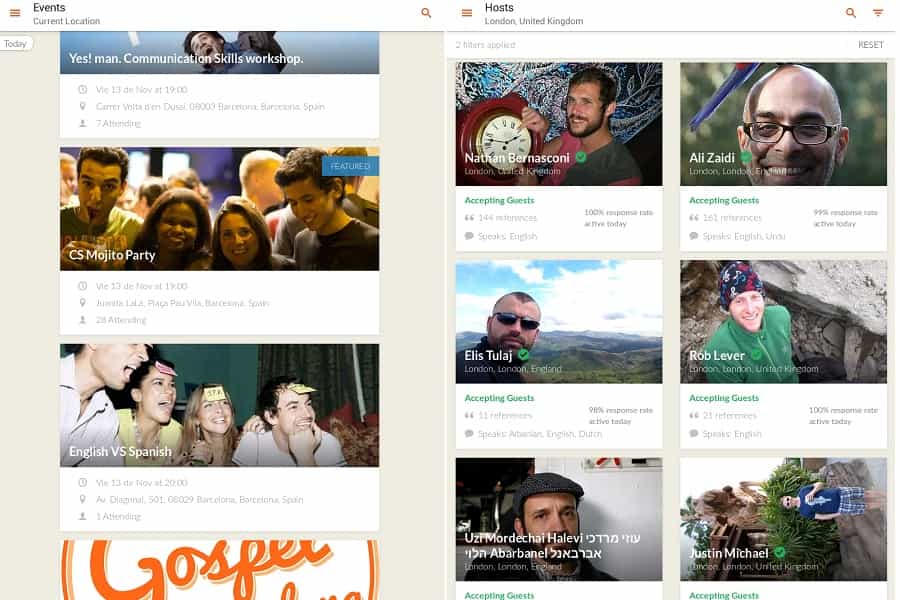 Esta web nació como una red de viajeros que nos permite: alojar a alguien en nuestra casa, pedir alojamiento cuando vamos de viaje, organizar y participar en actividades locales. Hoy ya tiene aplicación móvil, lo que hace más fácil conseguir un alojamiento de última hora, conocer otros viajeros que estén en la misma ciudad o encontrar algún panorama cerca nuestro si estamos aburridos. Además de darnos la posibilidad de encontrar alojamiento gratis, nos permite conectar con gente local que nos pueden dar consejos y mostrar la ciudad, mucho mejor que cualquier tour pagado.