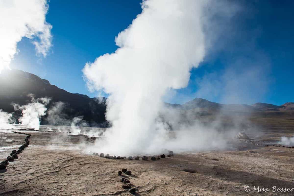 Lunes: Cerca de las 5 am, el minu bus del tour te va a buscar a tu hostal para ir a los Geyser del Tatio... es aquí dónde puedes ver cómo los geyser hacen erupciones desde el suelo... pequeñas erupciones de los volcanes que rodean nuestro desierto chileno. Debes ir muuuuy abrigado, ya que la temperatura a esa hora es de -10grados Celsius!!!! Recuerda llevar traje de baño, ya que como a las 9 am puedes bañarte en unas mini termas... recomendable!!!! Además, visitas el pueblito de Machuca en donde viven sólo 8 familias, y debes probar el anticucho de la carne de Llamo y las empanadas de queso de cabra... Imperdible! La carne de llamo es magra, sin grasa y muy banda... una delicia!