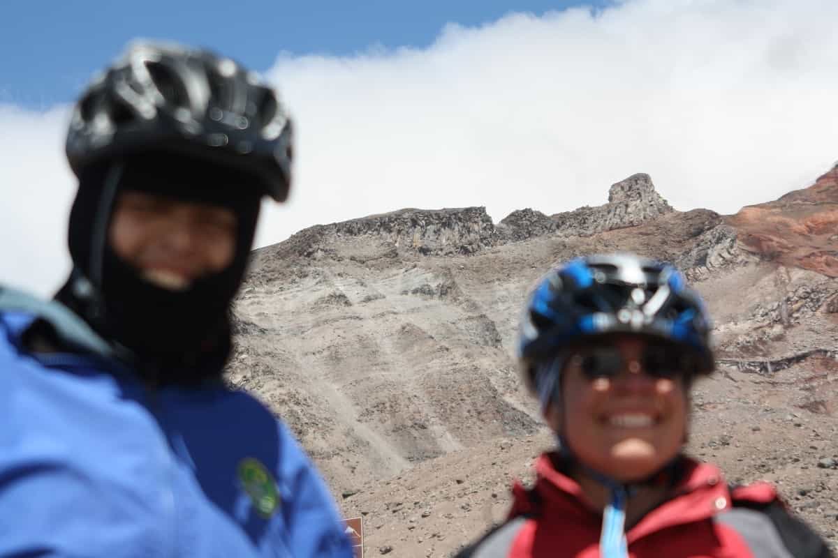 Durante el trayecto, iba concentrada para no caerme por el camino lleno de piedras y viento que, además de frío, te desequilibra en varios puntos. En la mitad del viaje, luego de 1,5 horas de recorrido, paramos a merendar. Aunque sea bajada, el ejercicio de equilibrio y concentración cansa, sobre todo los brazos debido a las frenadas. La empresa regala una fruta, café, té y agua, y si quiere algo adicional la gente lo lleva por su cuenta. El sitio del descanso me gustó, tiene una buena vista de la montaña y como ya habíamos bajado el trayecto más empinado, no hacía tanto frío.