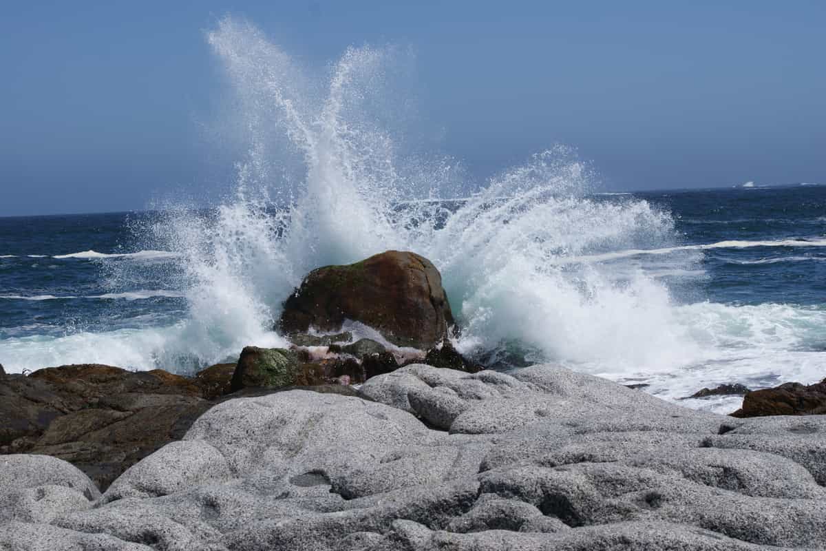 En este reducido sector el mar dibuja colores turquesa y azules sobre el oleaje que rompe en los grandes roqueríos que encierran la playa.