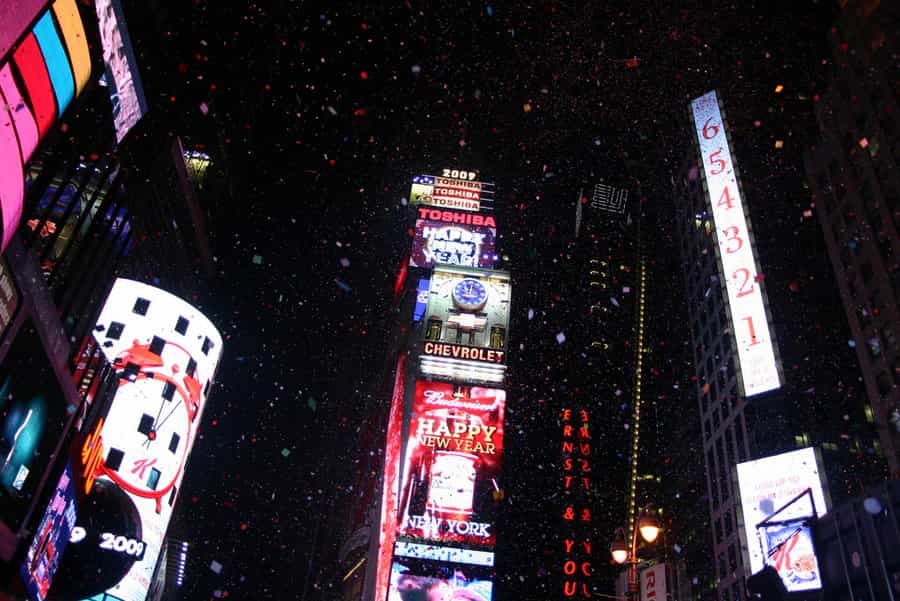 Desde 1907 una esfera ha ido bajando desde Times Square siguiendo el conteo para comenzar el nuevo año. Esta tradición se sigue manteniendo junto a un espectáculo de fuegos artificiales y música en vivo.