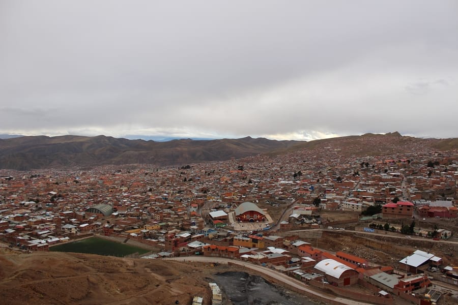 Apenas la lluvia terminó salimos del lugar en dirección al Cerro Rico. Antiguamente era el yacimiento de plata más grande del mundo. Hoy, las agencias turísticas te llevan a recorrer el interior, donde aún se trabaja el metal, pero como había llovido tanto el tour ese día no funcionó. Igual fuimos en un taxi que salió súper caro y ni siquiera pudimos subir hasta el mirador porque había demasiado barro, producto de la reciente lluvia. Encontramos, entonces, una terraza más baja desde donde se veía toda la ciudad. El espectáculo era precioso. Miles de tejados color ladrillo parecían mimetizarse con los tonos de la montaña, aun húmeda, bajo el cielo gris que no conseguía opacar la postal.